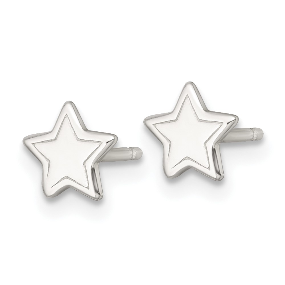 Sterling Silver Polished and Grooved Star Childrens Post Earrings