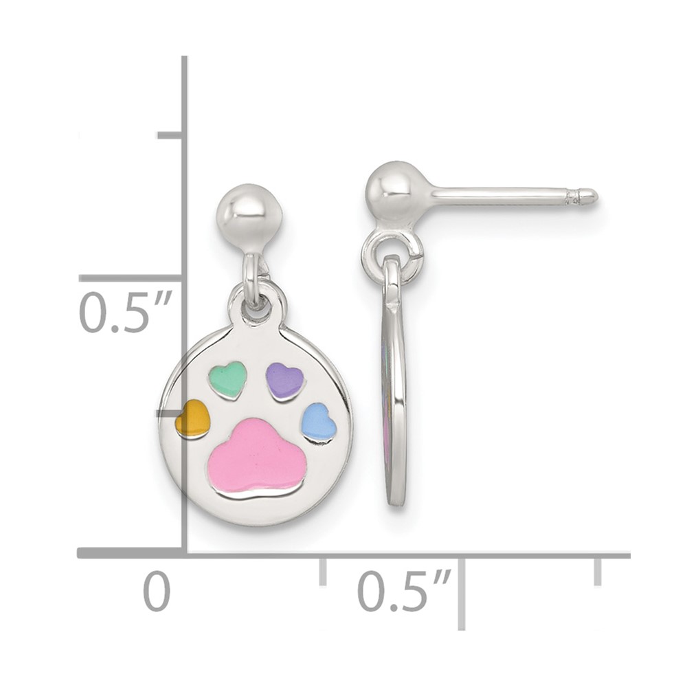 Sterling Silver Polished Enameled Multi-color Heart Pawprint Childrens Post Dangle Earrings