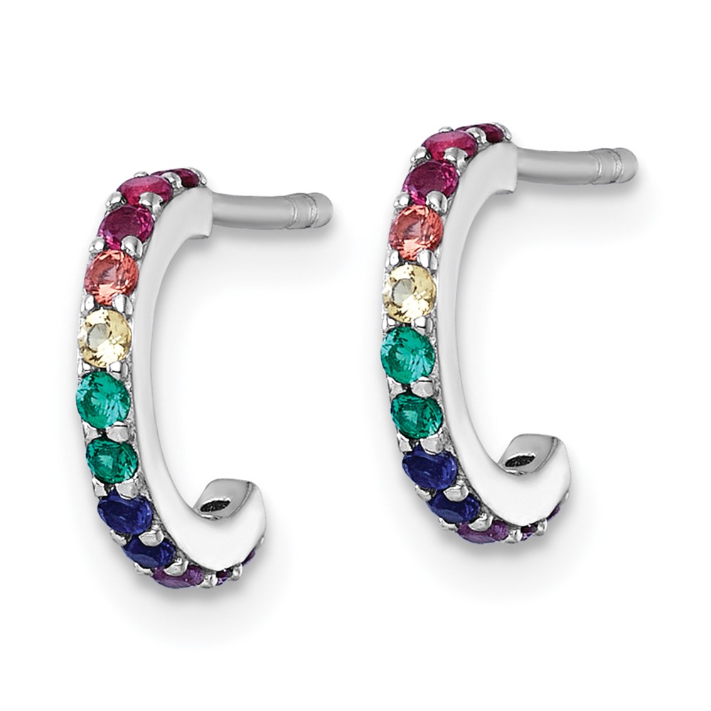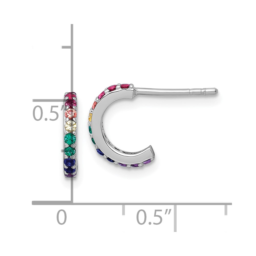 Sterling Silver Rhodium-plated Polished Rainbow Nano Crystals Childrens J-Hoop Post Earrings