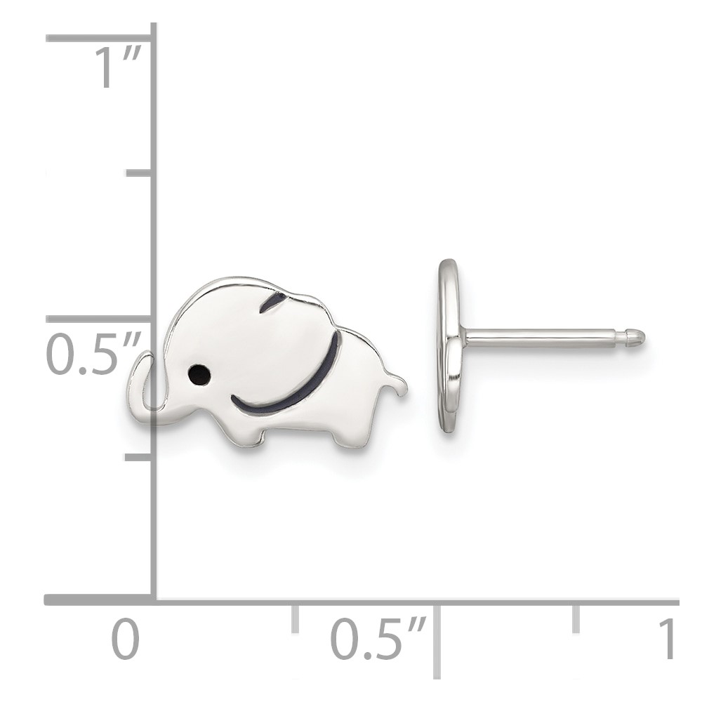 Sterling Silver Polished Black Enameled Elephant Childrens Post Earrings