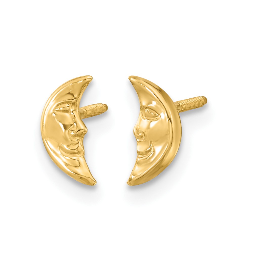 14k Madi K Moon with Face Childrens Screwback Post Earrings