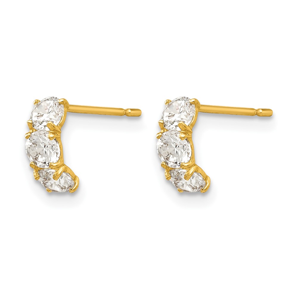 14k Madi K CZ Three Stone Childrens Post Earrings