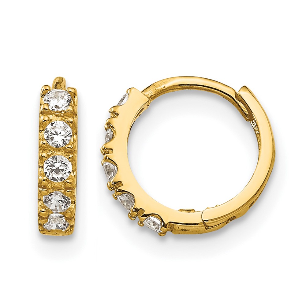 14k Madi K CZ 3x9mm Childrens Hinged Hoop Earrings