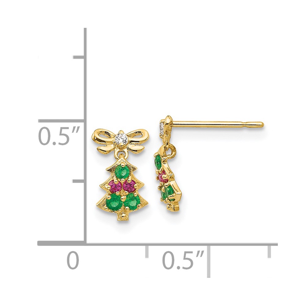 14k Madi K CZ Christmas Tree Dangle Childrens Post Earrings
