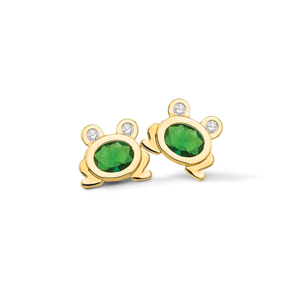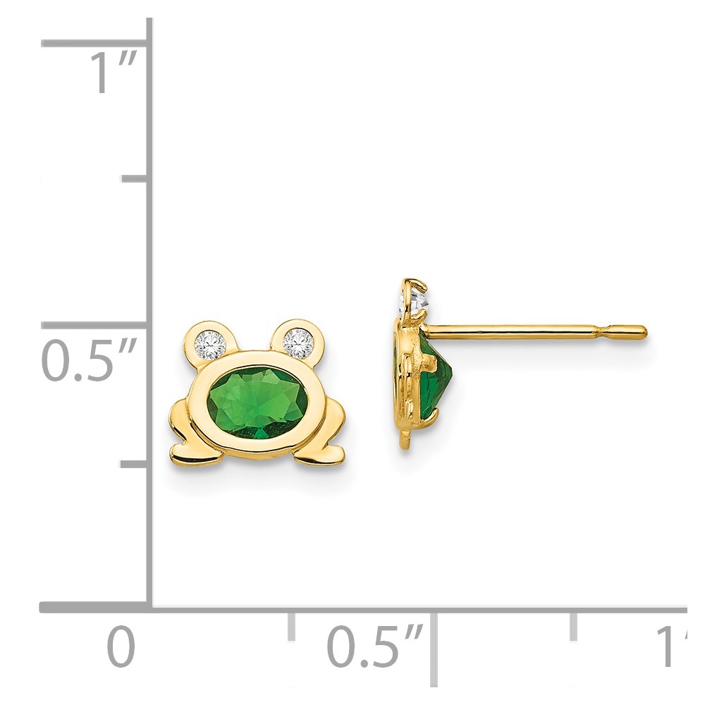 14k Madi K Green and Clear CZ Frog Childrens Post Earrings