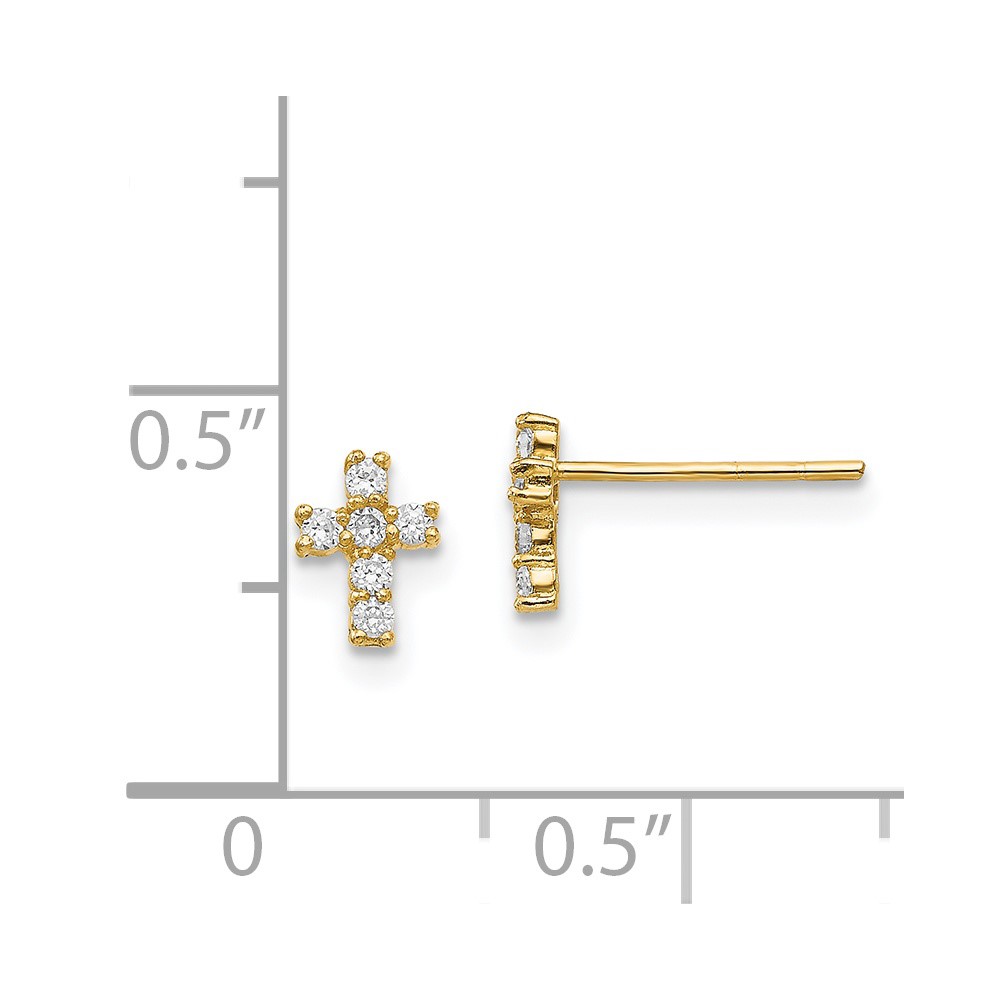 14K Madi K Polished CZ Cross Childrens Post Earrings