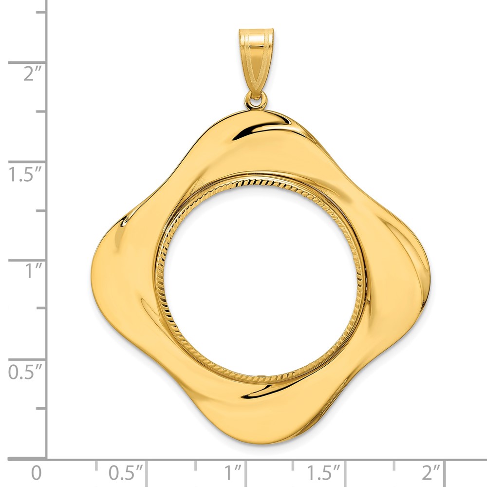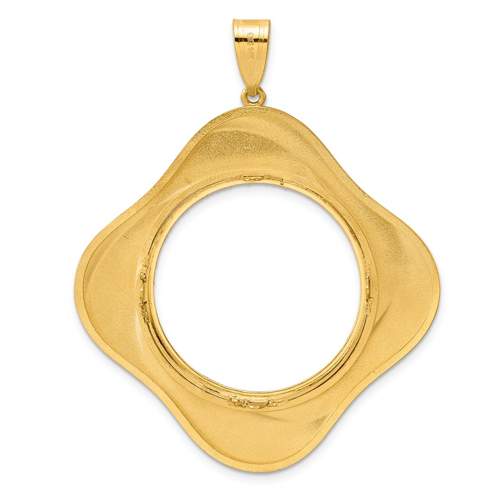 Wideband Distinguished Coin Jewelry 14k Polished and Diamond-cut 39.5mm Prong Coin Bezel Pendant