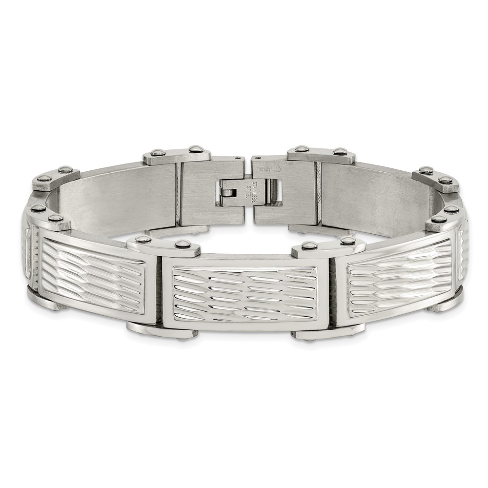 Chisel Stainless Steel Brushed Polished and Textured 8.25 inch Link Bracelet