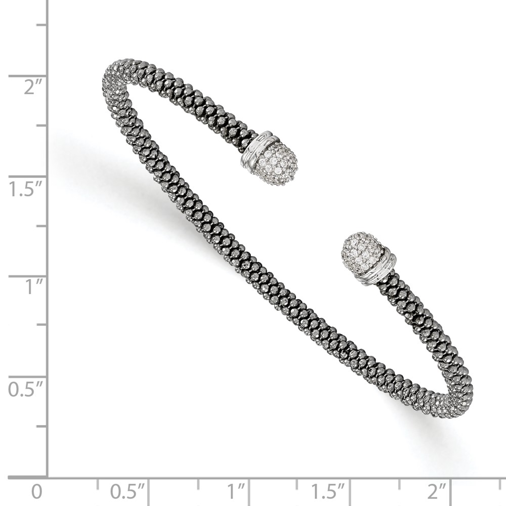 Leslie's Sterling Silver Ruthenium-plated CZ Cuff Bangle