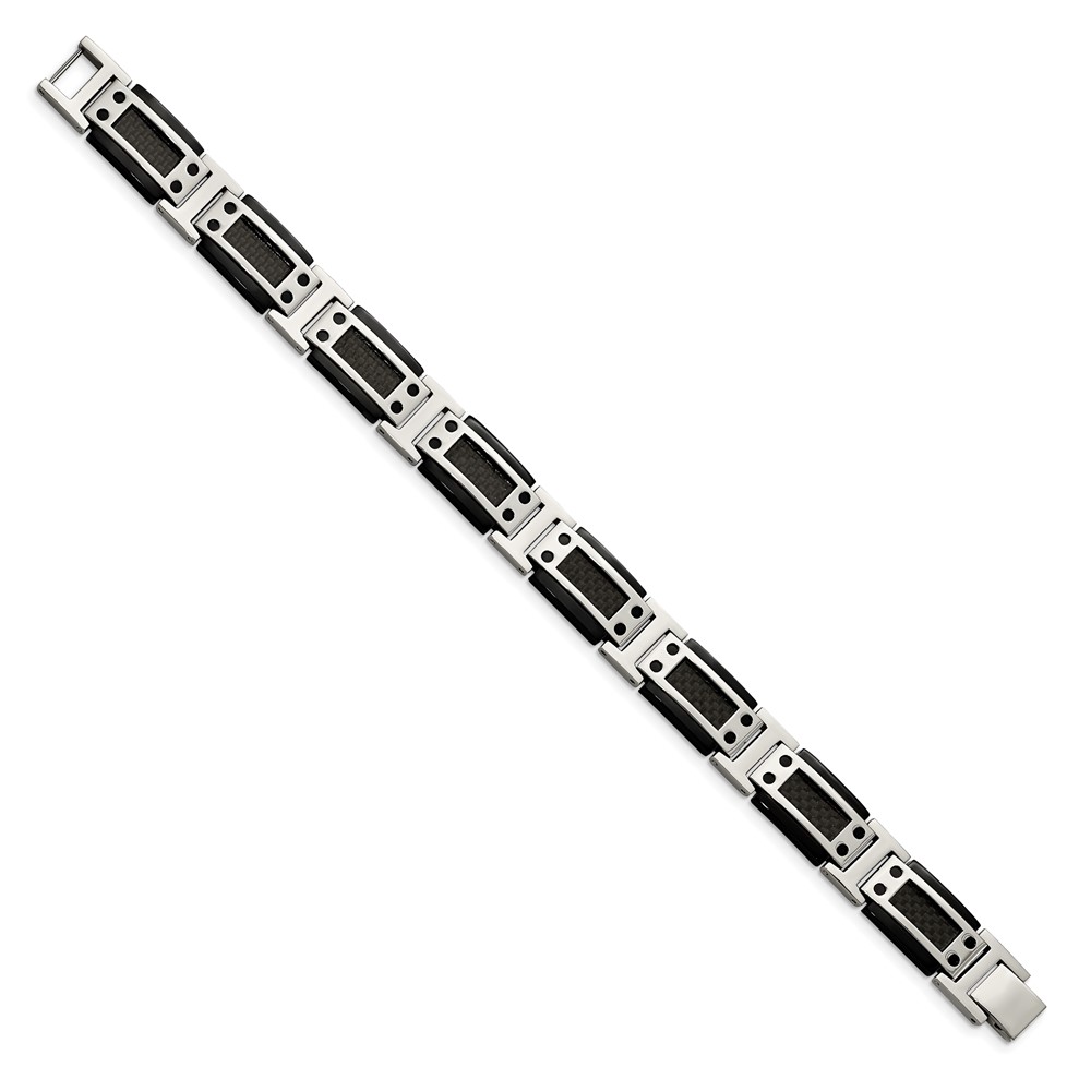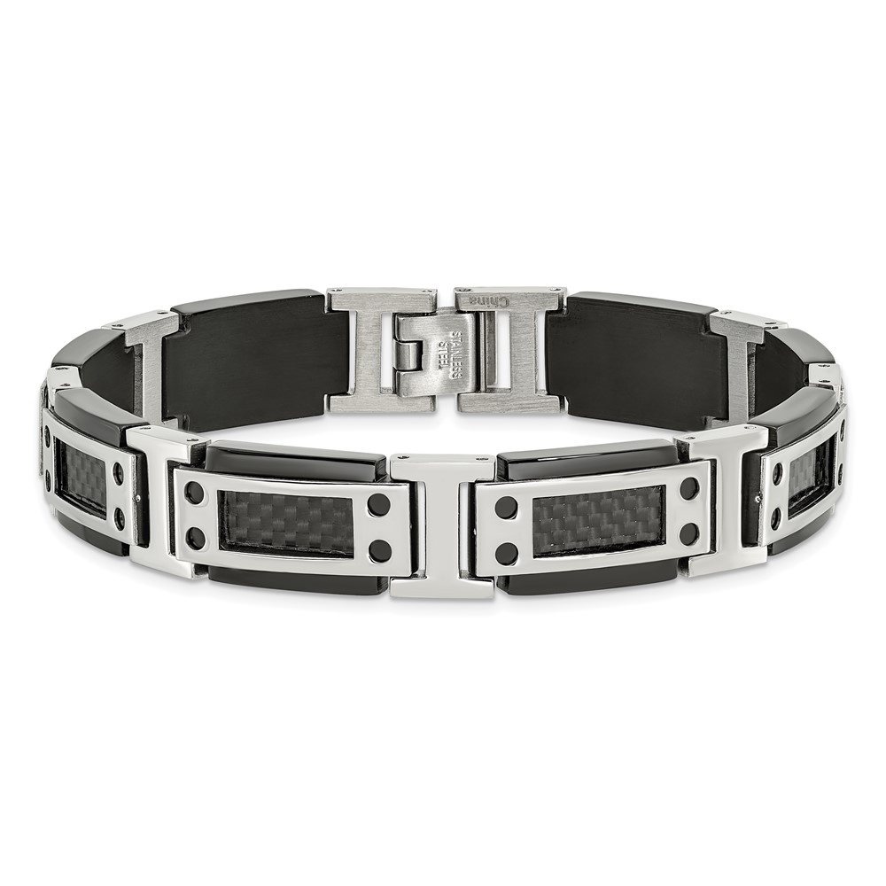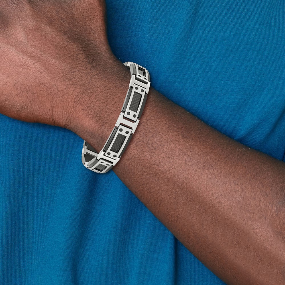 Chisel Stainless Steel Polished Black IP-plated with Black Carbon Fiber Inlay 8.5 inch Link Bracelet