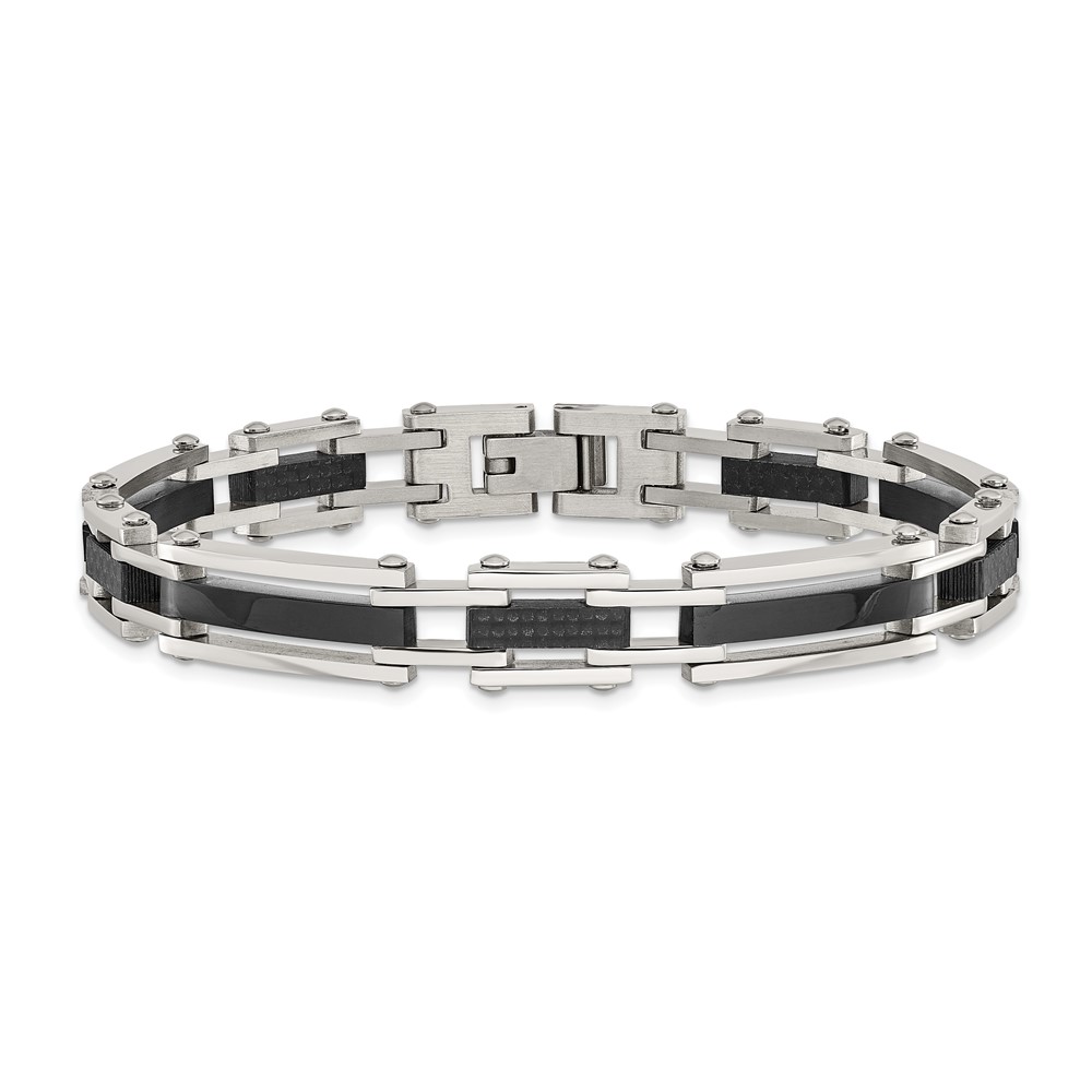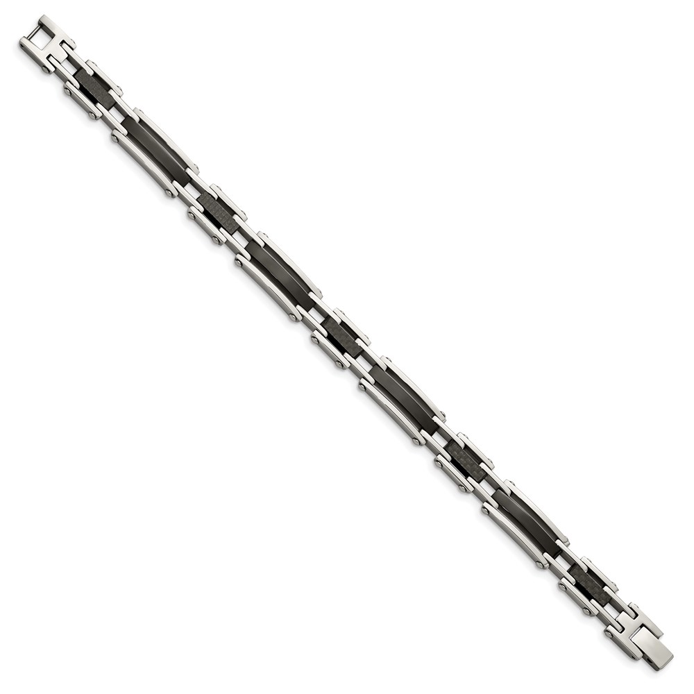 Chisel Stainless Steel Polished Black IP-plated with Solid Black Carbon Fiber 8.25 inch Link Bracelet