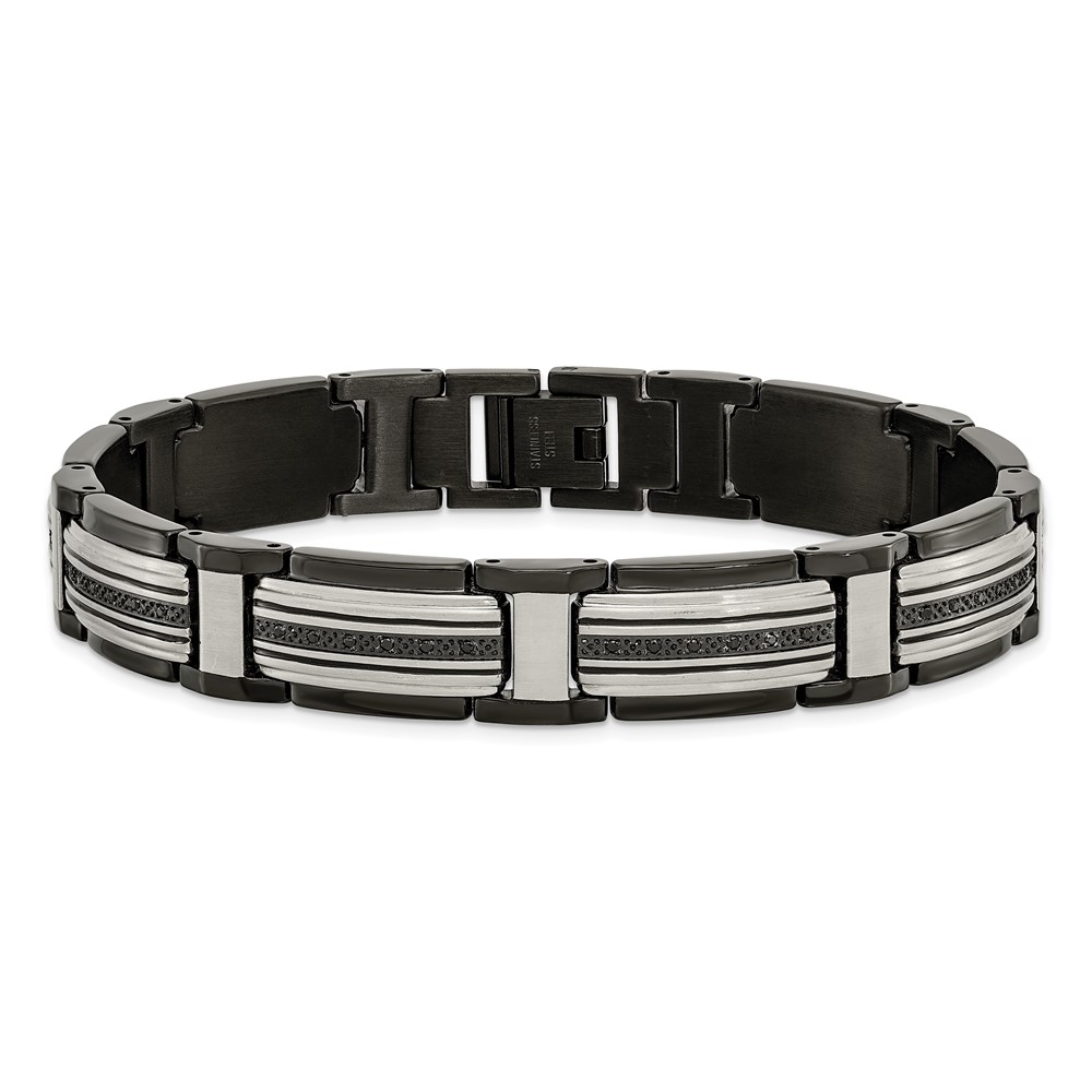 Chisel Stainless Steel Polished Black IP-plated with Black CZ 8.75 inch Link Bracelet