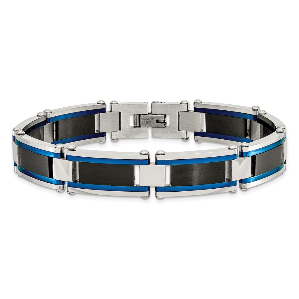 Chisel Stainless Steel Brushed and Polished Black and Blue IP-plated 8.75 inch Link Bracelet