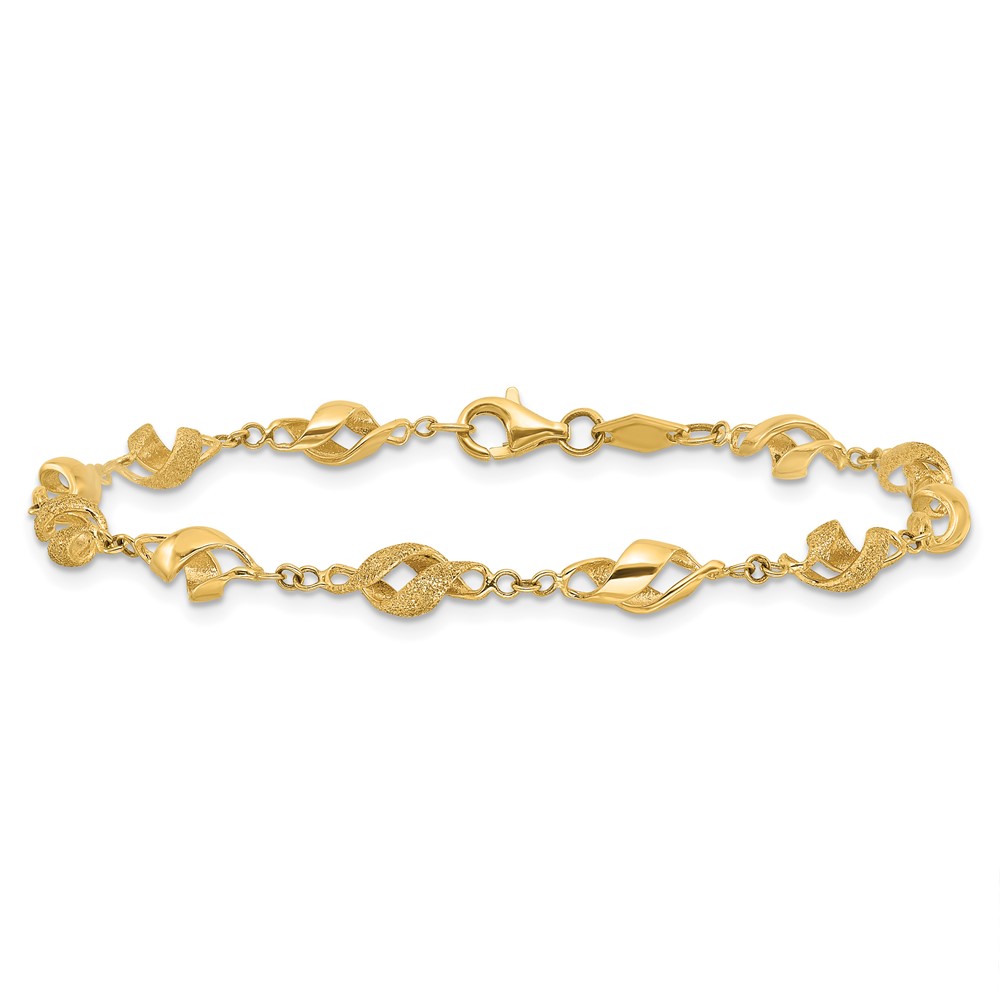 10k Polished and Lasered Spiral Link 7.25in Bracelet