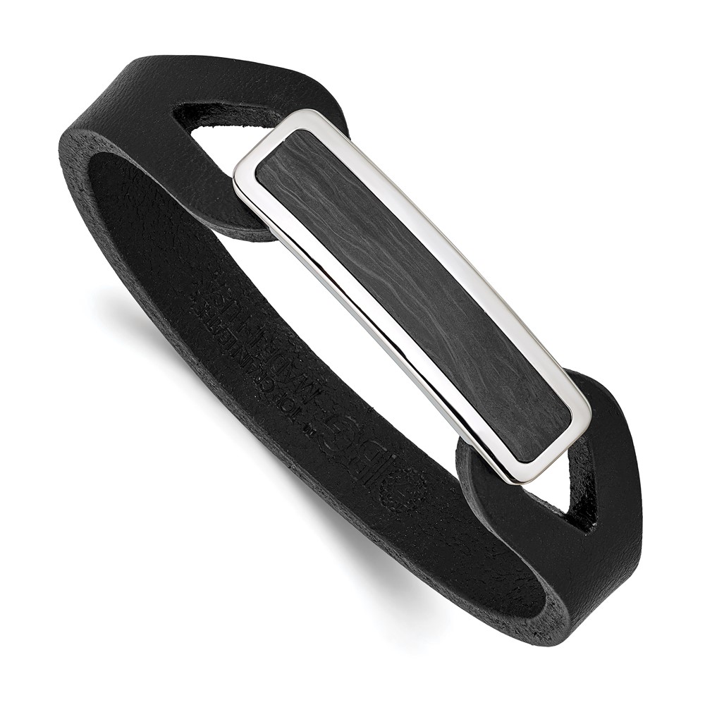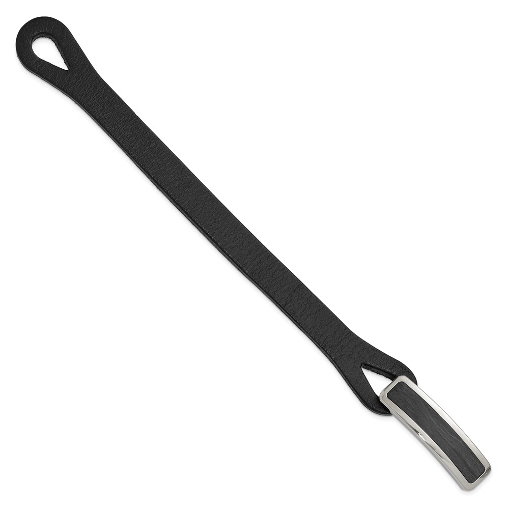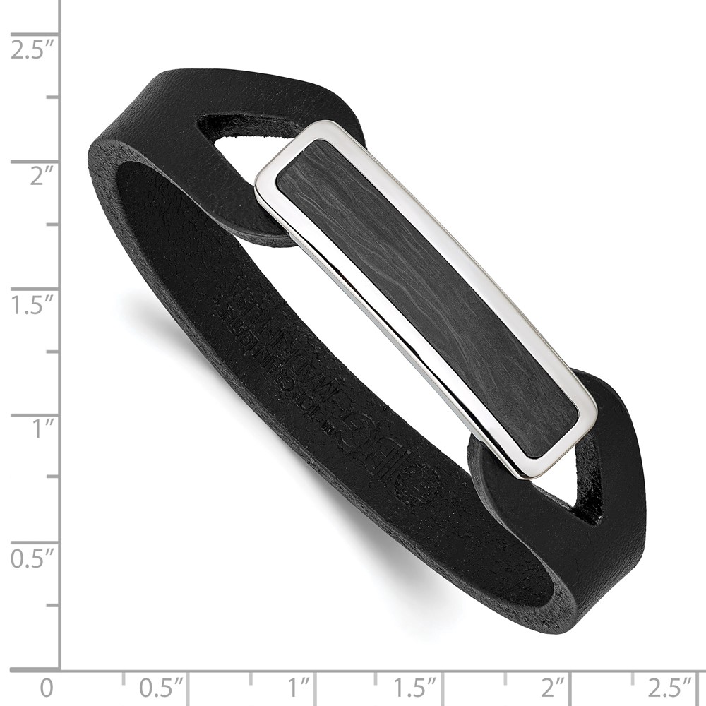 Chisel Stainless Steel Antiqued and Polished Black Leather 8 inch with .5 inch extension Bracelet