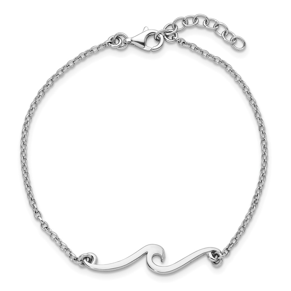 Sterling Silver Rhodium-plated Polished Wave 7 inch with a 1 inch extention Bracelet