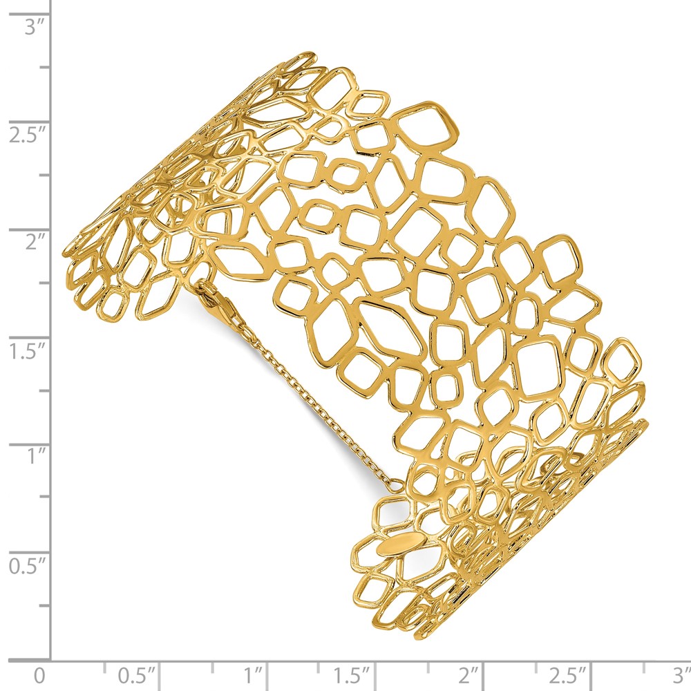 Herco 18K Polished Wide Contemporary w/ Safety Chain Cuff Bangle