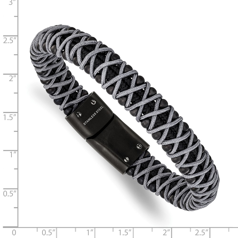 Chisel Stainless Steel Brushed Black IP-plated and Grey Nylon 8.5 inch Bracelet