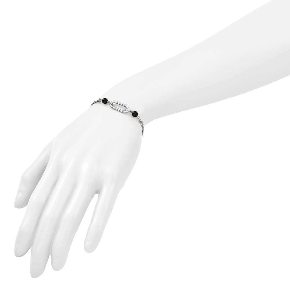 Leslie's SS RH-pltd Black Glass Pearl 2-Strand Link w/1in Ext Bracelet