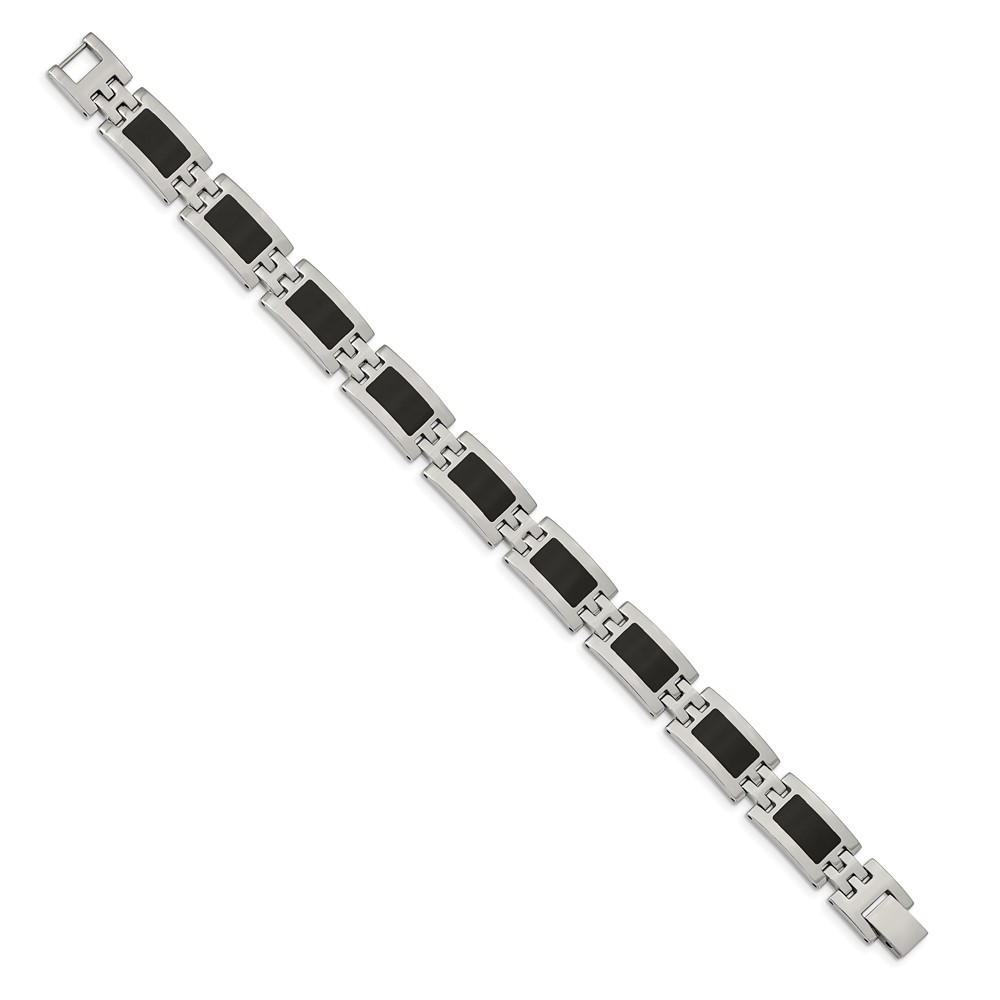 Chisel Stainless Steel Polished with Black Enamel 9 inch Link Bracelet