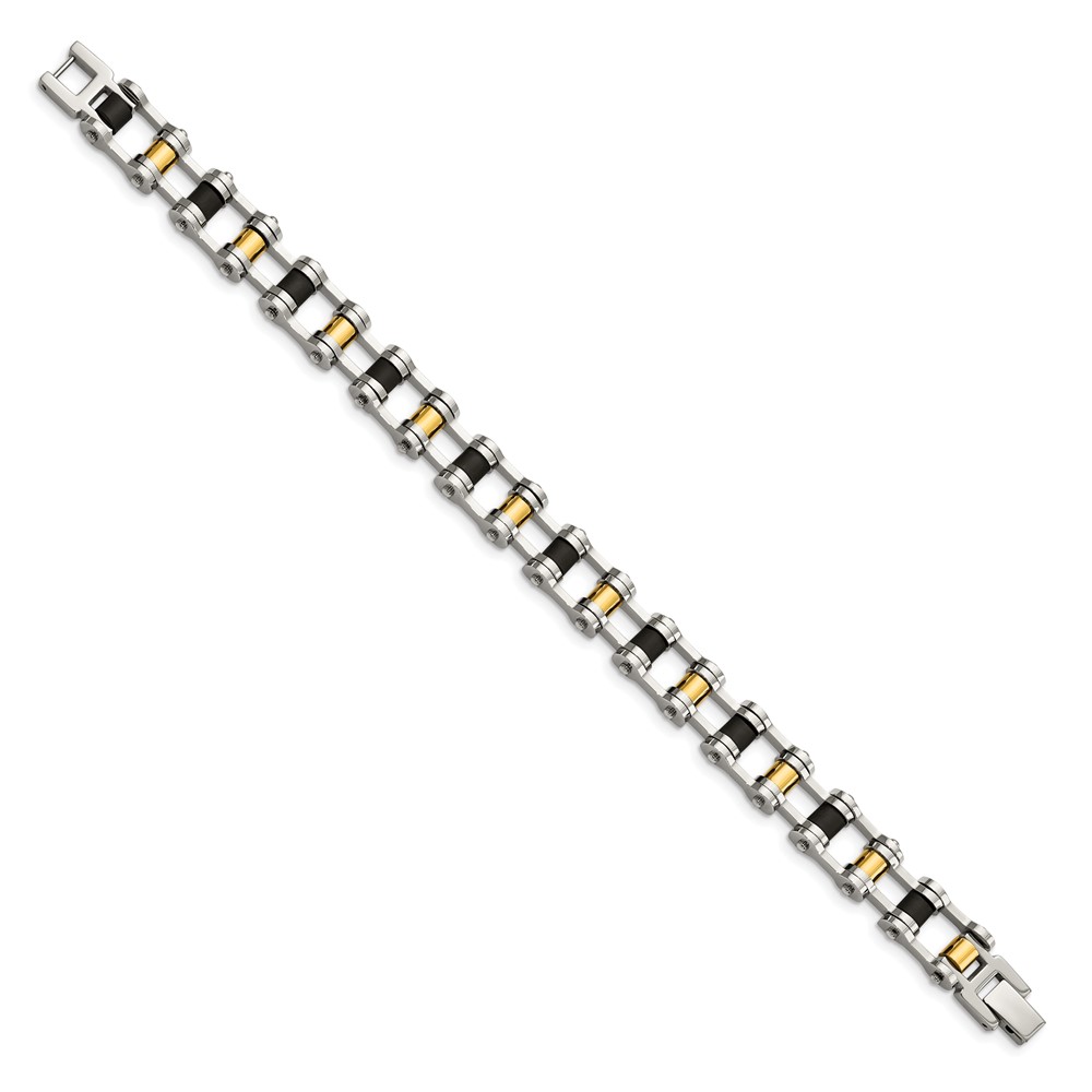Chisel Stainless Steel Polished Yellow IP-plated with Black Rubber 8.75 inch Bracelet