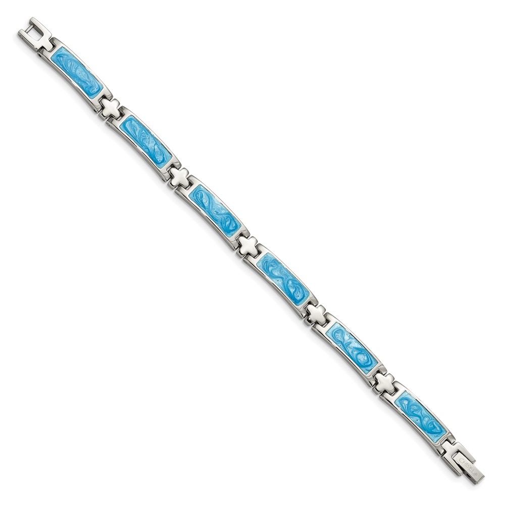 Chisel Stainless Steel Polished with Blue Swirl Enamel 7.25 inch Link Bracelet