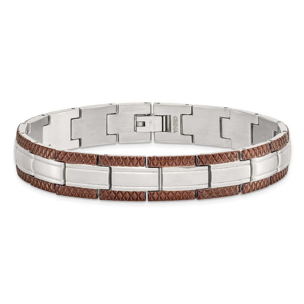 Chisel Stainless Steel Brushed with Textured Brown IP-plated Edges 8.75 inch Link Bracelet