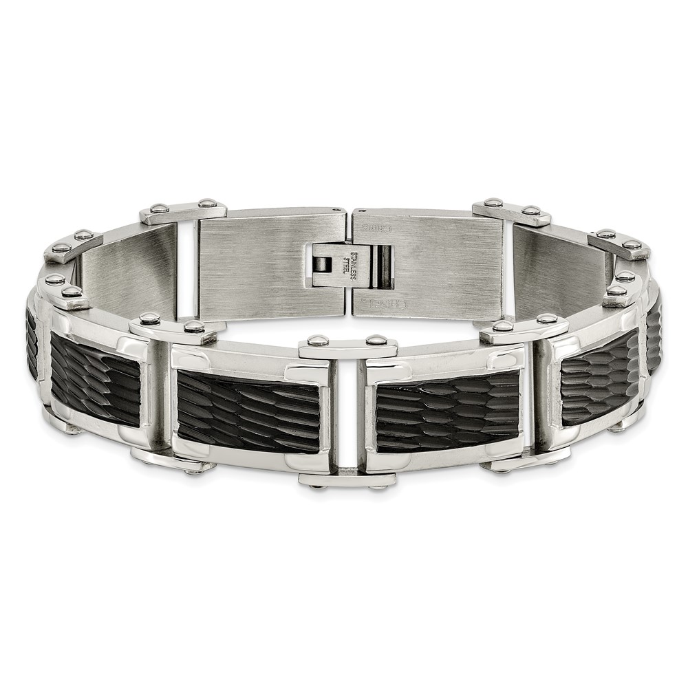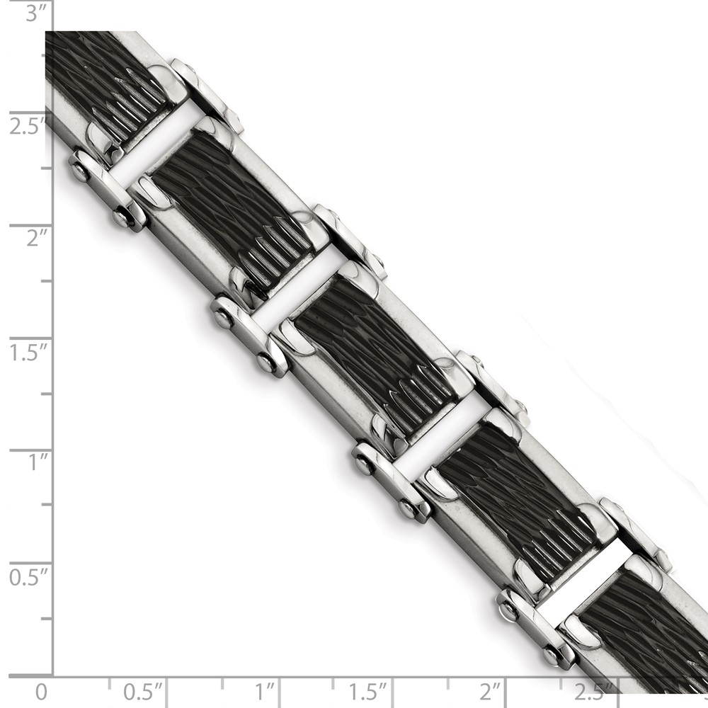 Chisel Stainless Steel Polished and Textured Black-plated 9 inch Link Bracelet
