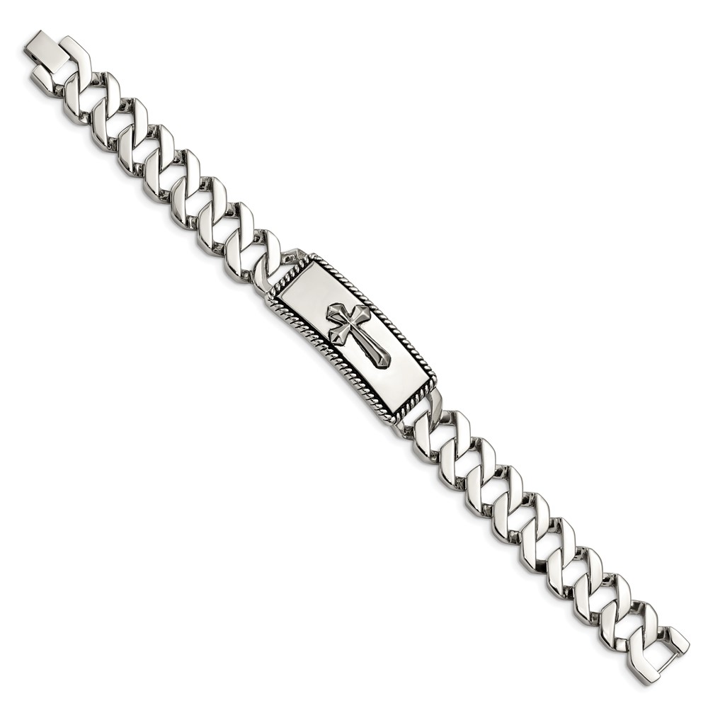 Chisel Stainless Steel Antiqued Polished and Textured 8.5 inch Cross ID Bracelet