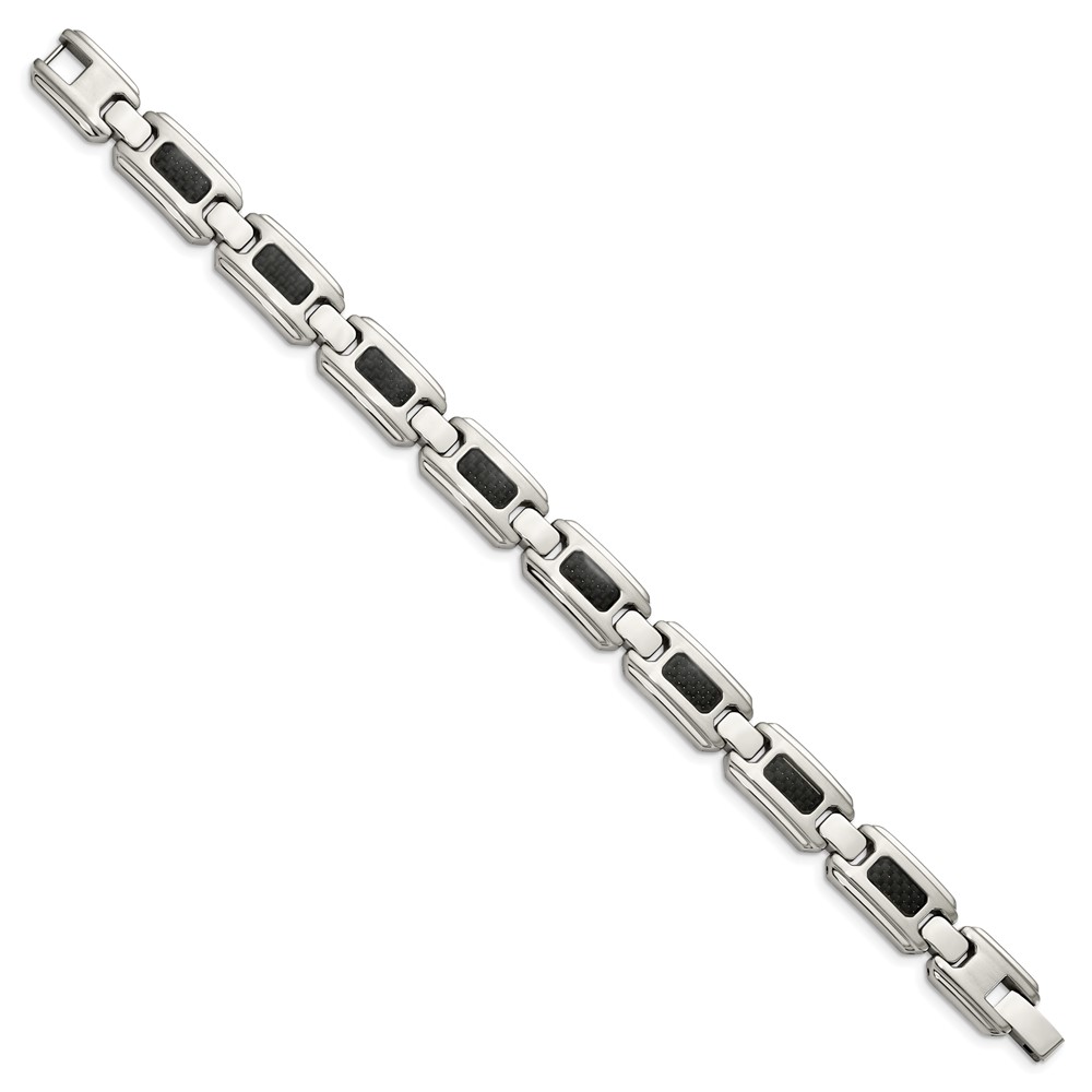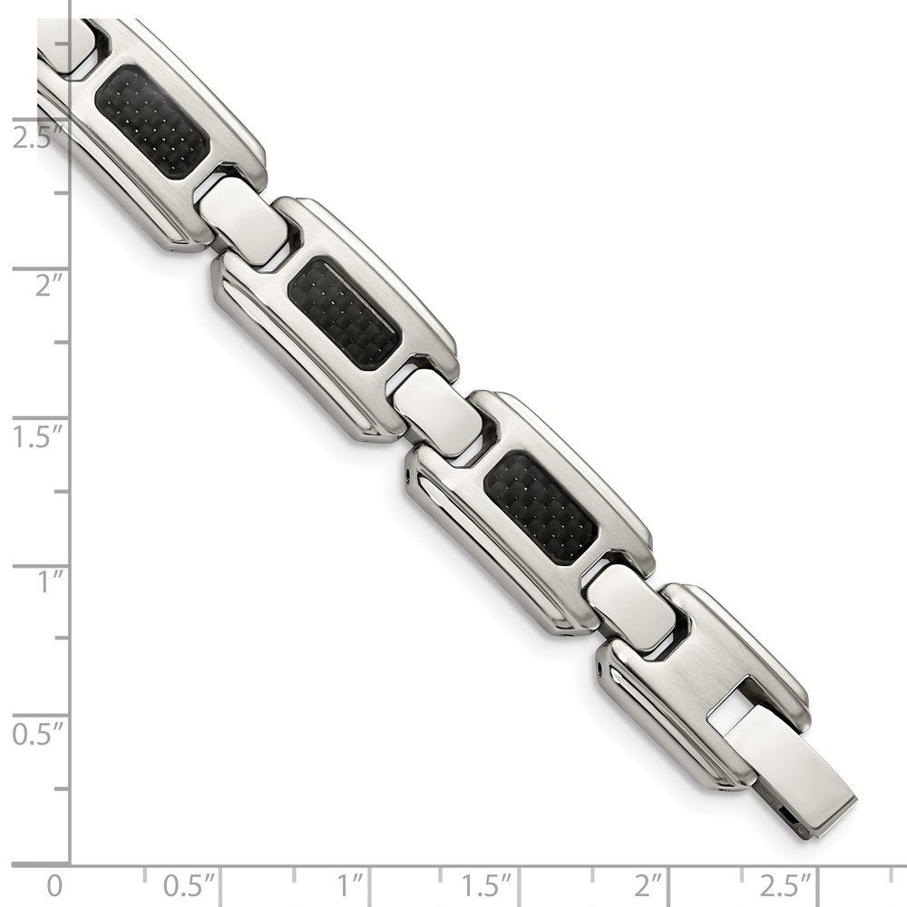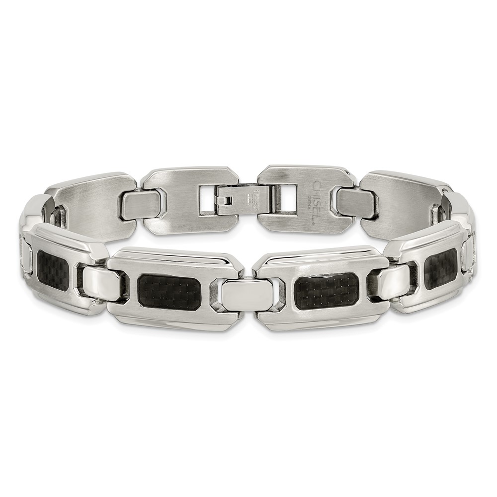 Chisel Stainless Steel Brushed and Polished with Black Carbon Fiber Inlay 9 inch Link Bracelet