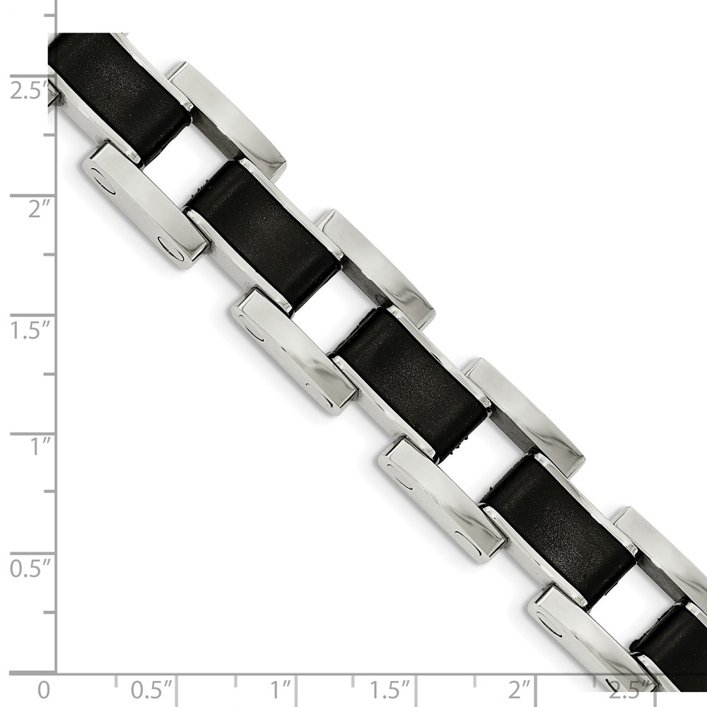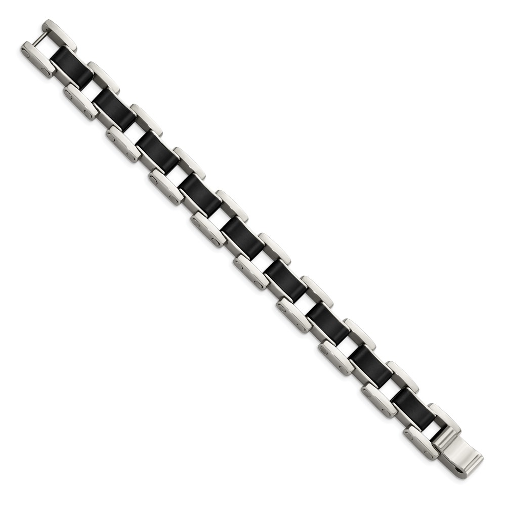 Chisel Stainless Steel Polished with Black Rubber Inlay 8.5 inch Link Bracelet