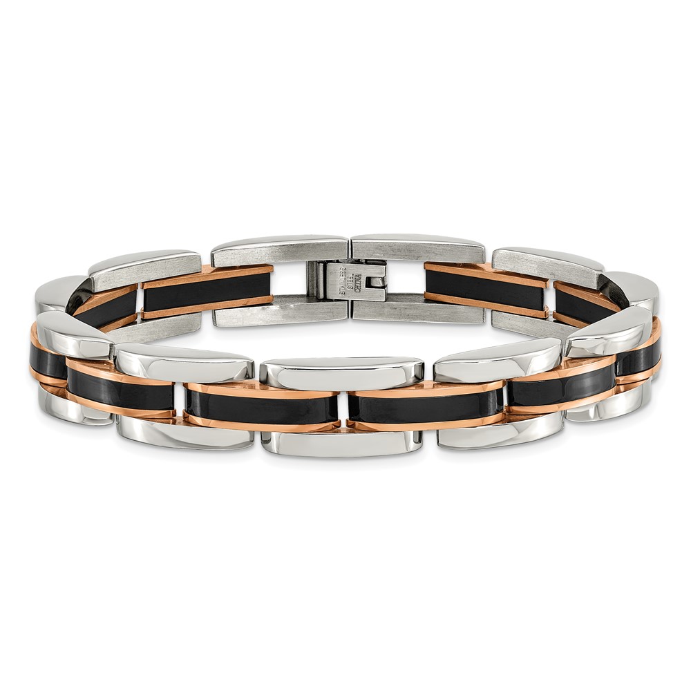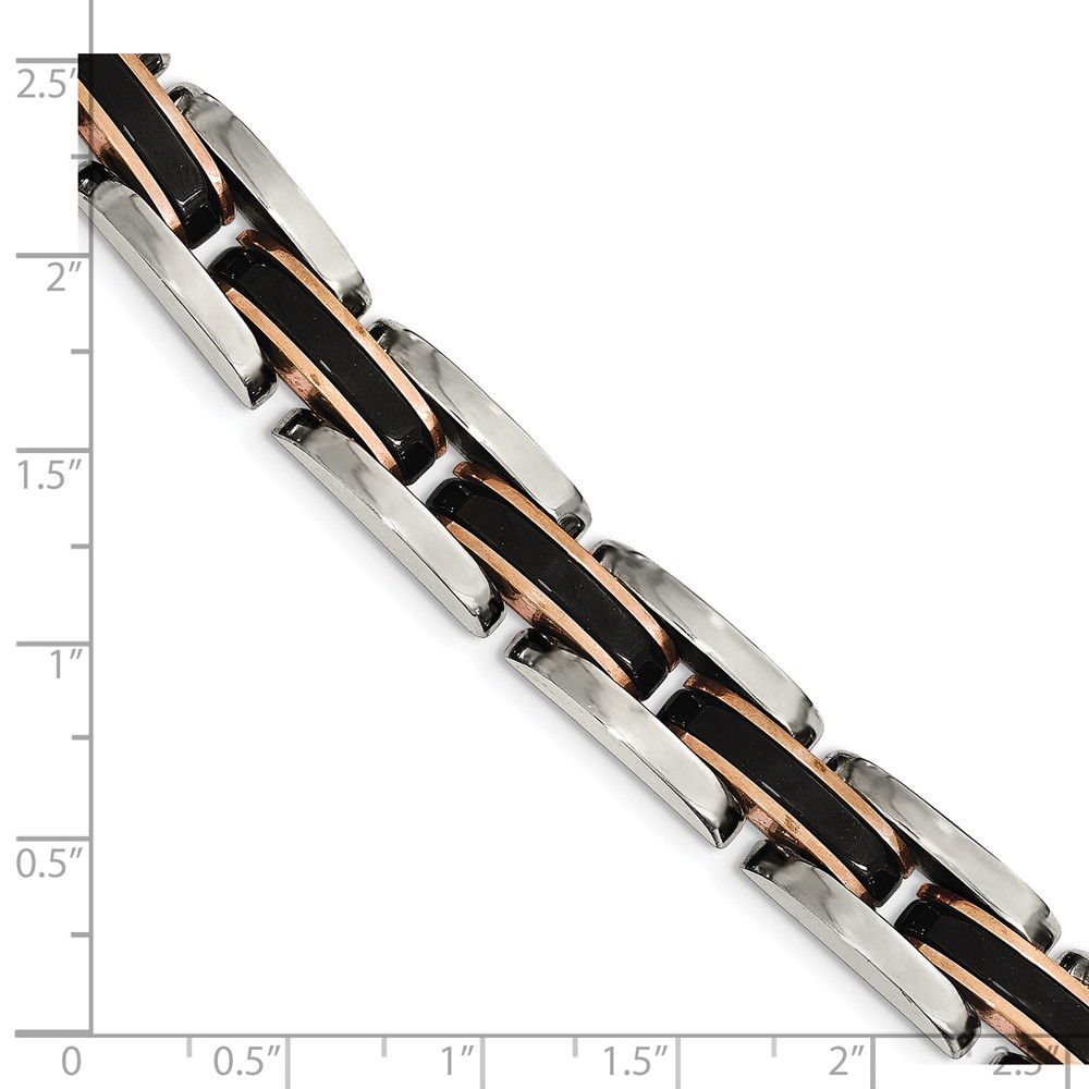 Chisel Stainless Steel Polished Black and Rose IP-plated 8.5 inch Link Bracelet