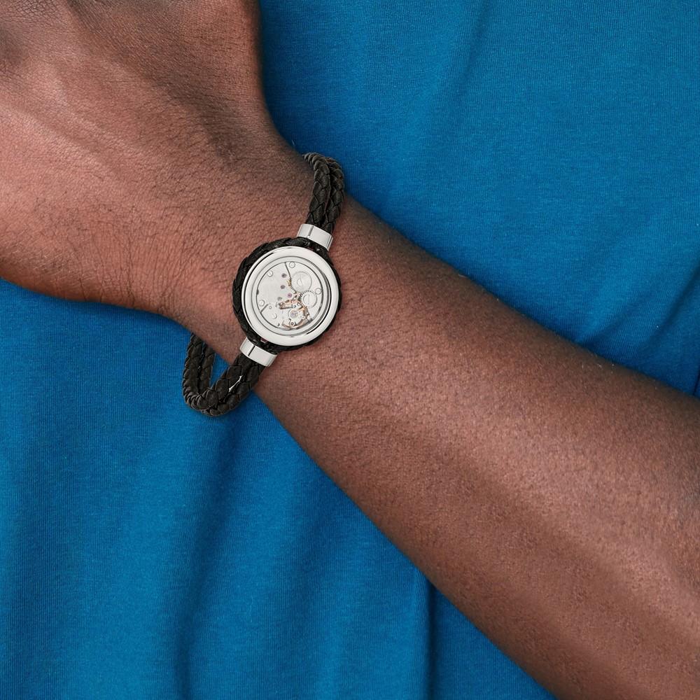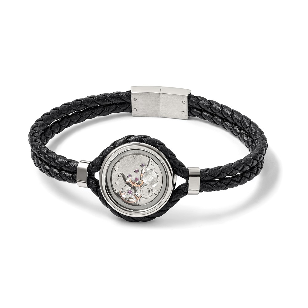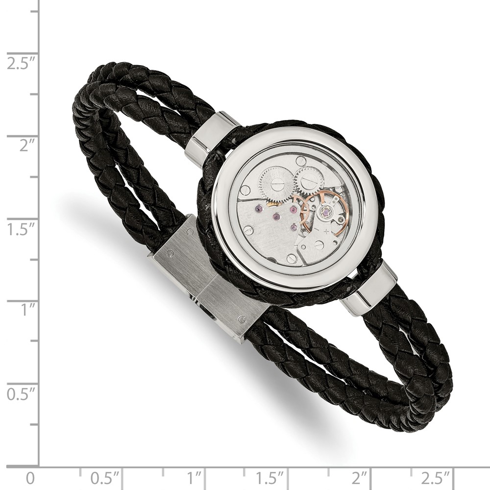 Chisel Stainless Steel Brushed and Polished Black Leather 9 inch Bracelet