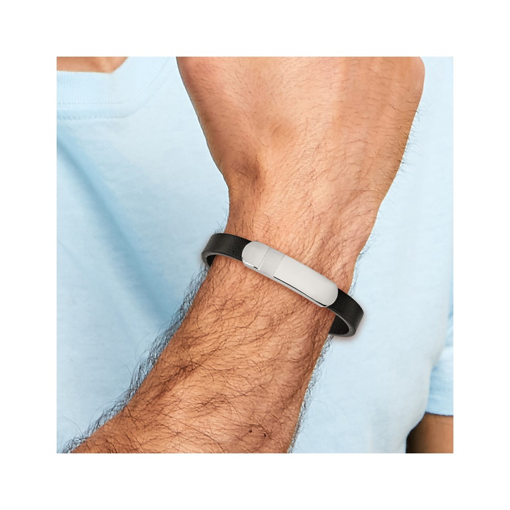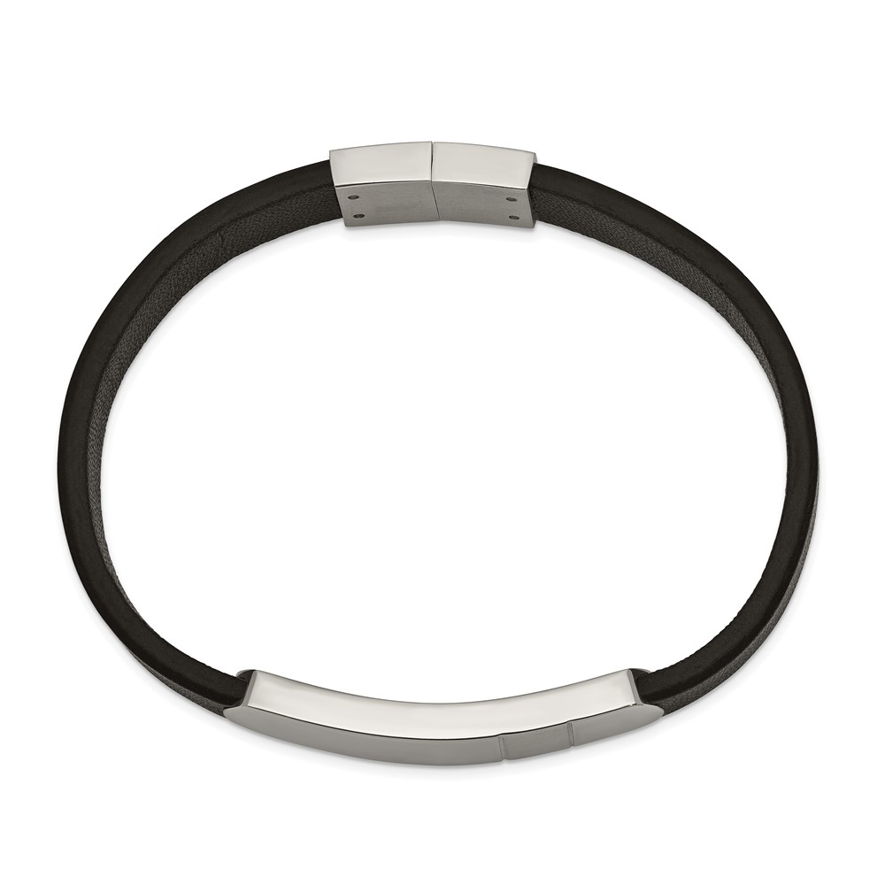 Chisel Stainless Steel Brushed and Polished Black Leather 8.5 inch ID Bracelet