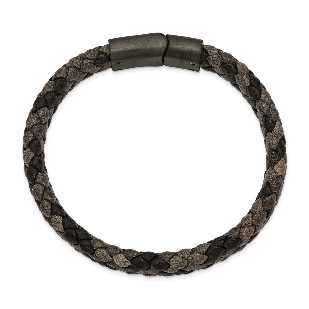 Chisel Stainless Steel Antiqued and Polished Braided Black Leather 8.25 inch ID Bracelet
