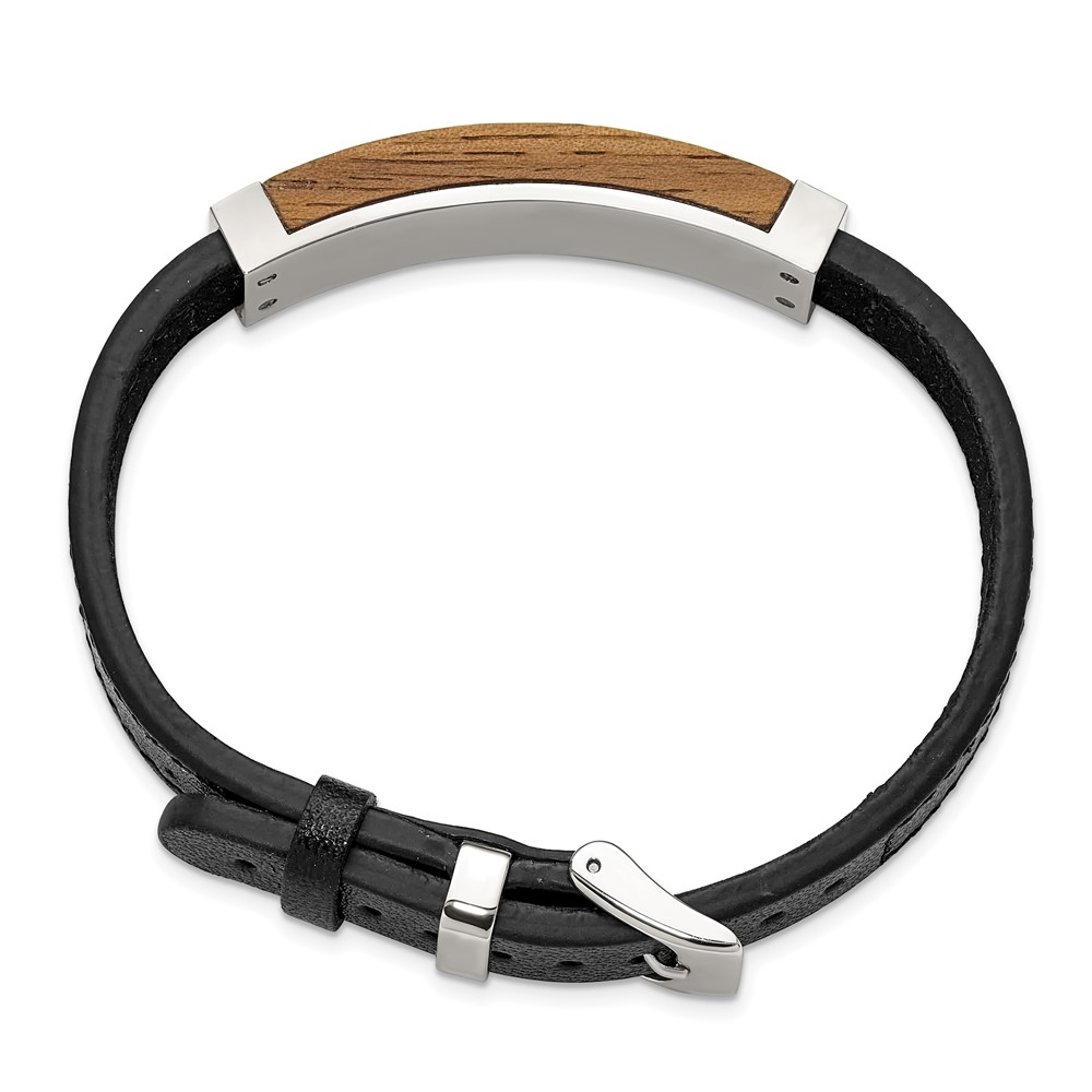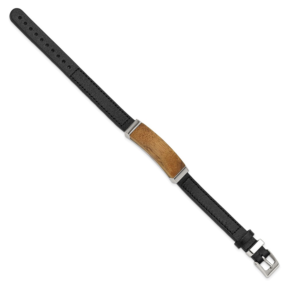 IBGoodman Stainless Steel Walnut Wood Leather 7 to 9 inch Bracelet