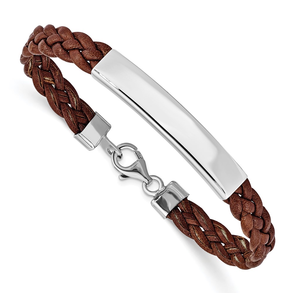 Sterling Silver Rhodium-plated Brown Braided Leather Bracelet