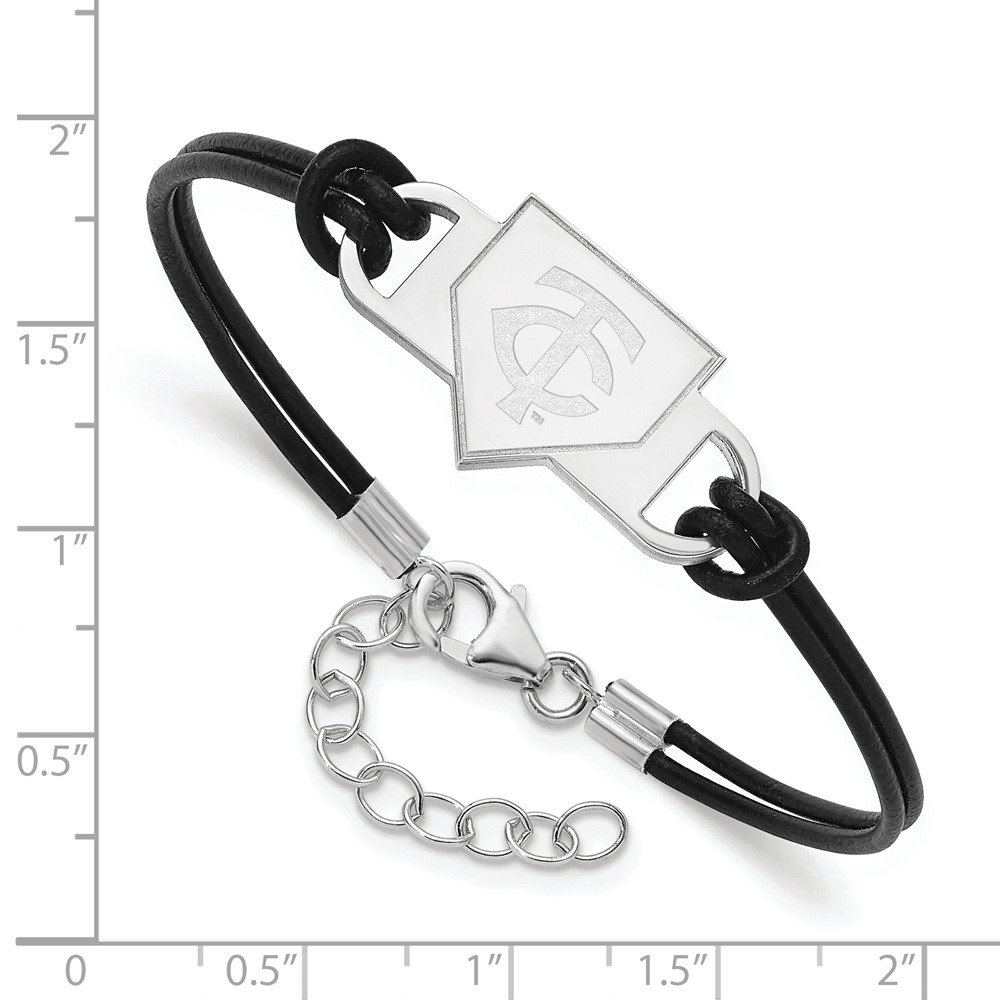 Sterling Silver Rhodium Plated Major League Baseball LogoArt Minnesota Twins Homeplate Leather Bracelet