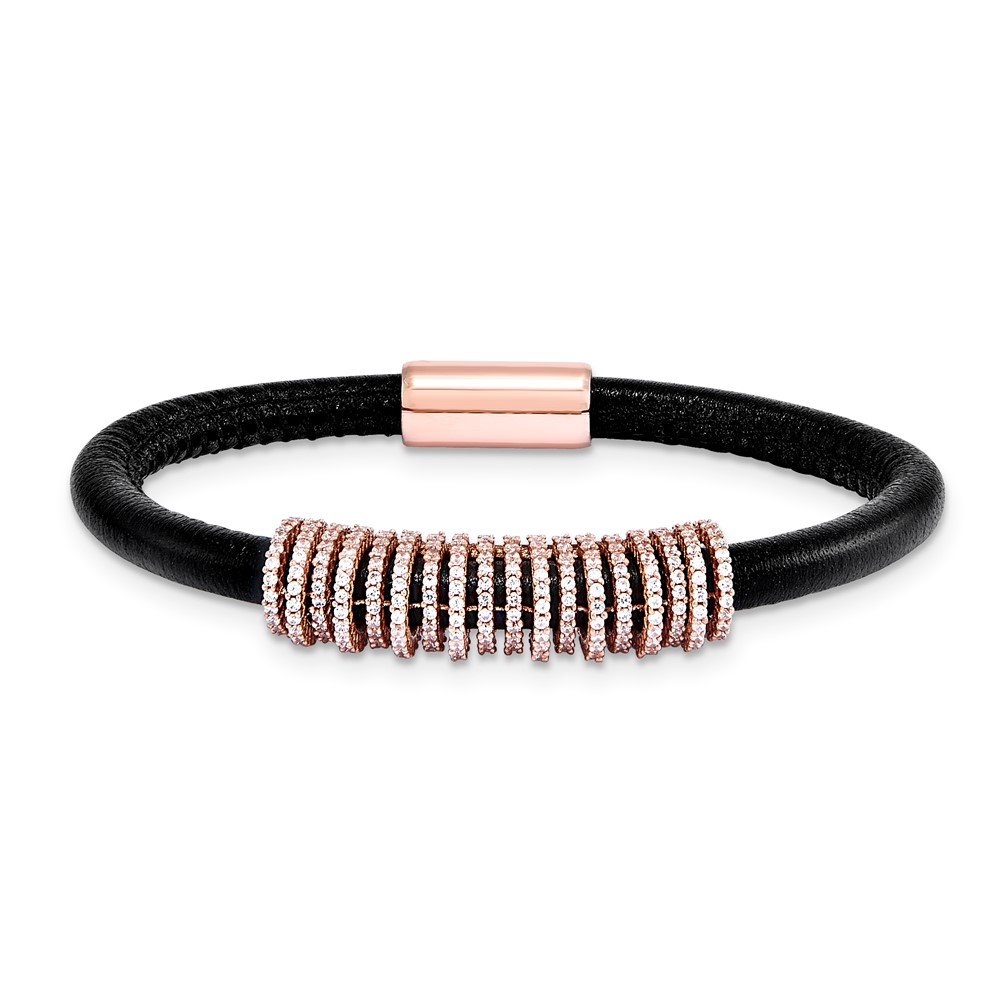 Chisel Stainless Steel Brushed Rose IP-plated Dark Brown Leather 8.5 inch Bracelet