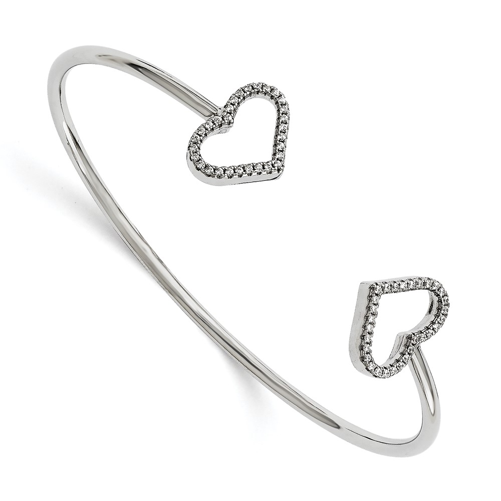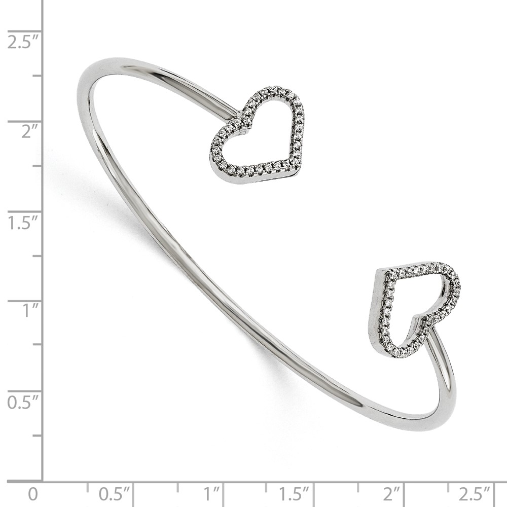 Brilliant Embers Sterling Silver Rhodium-plated 60 Stone Micro Pavé CZ Hearts Bangle