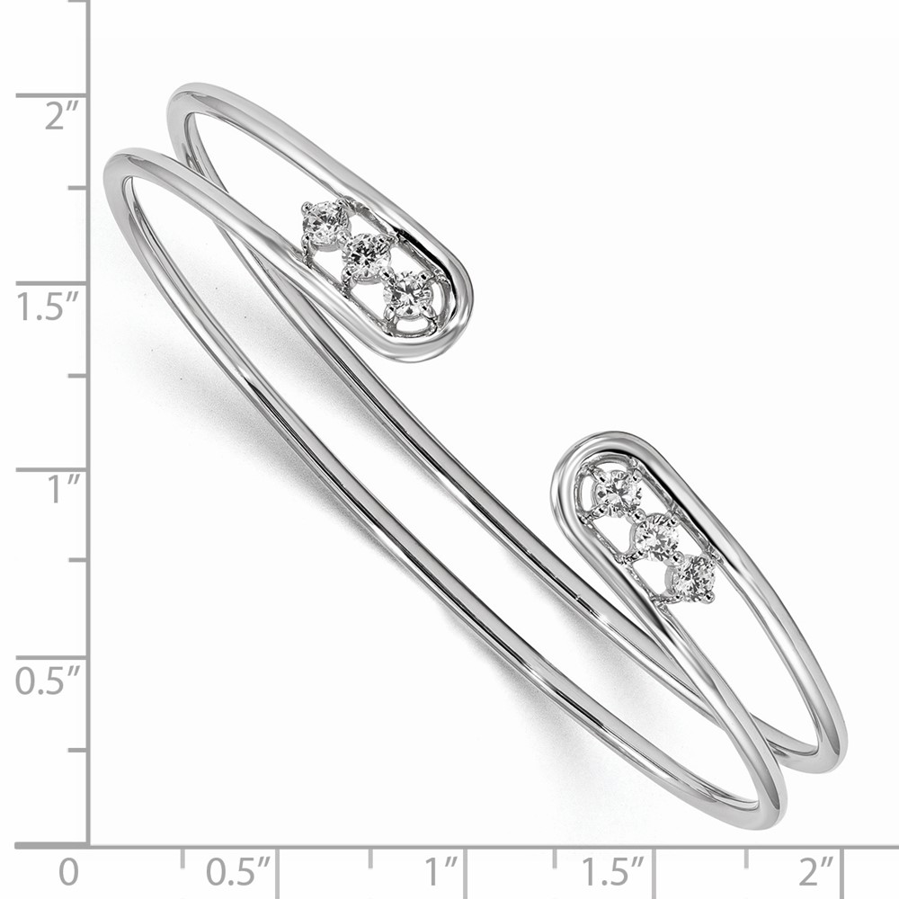 Sterling Silver Rhodium-plated CZ Cuff Bangle