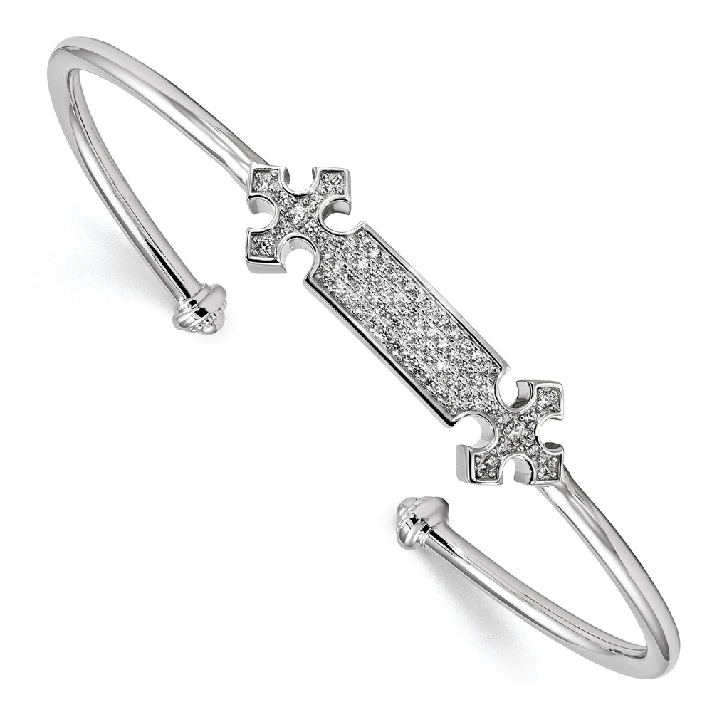 Pure Fire Sterling Silver Rhodium-plated CZ Cross Cuff Bangle