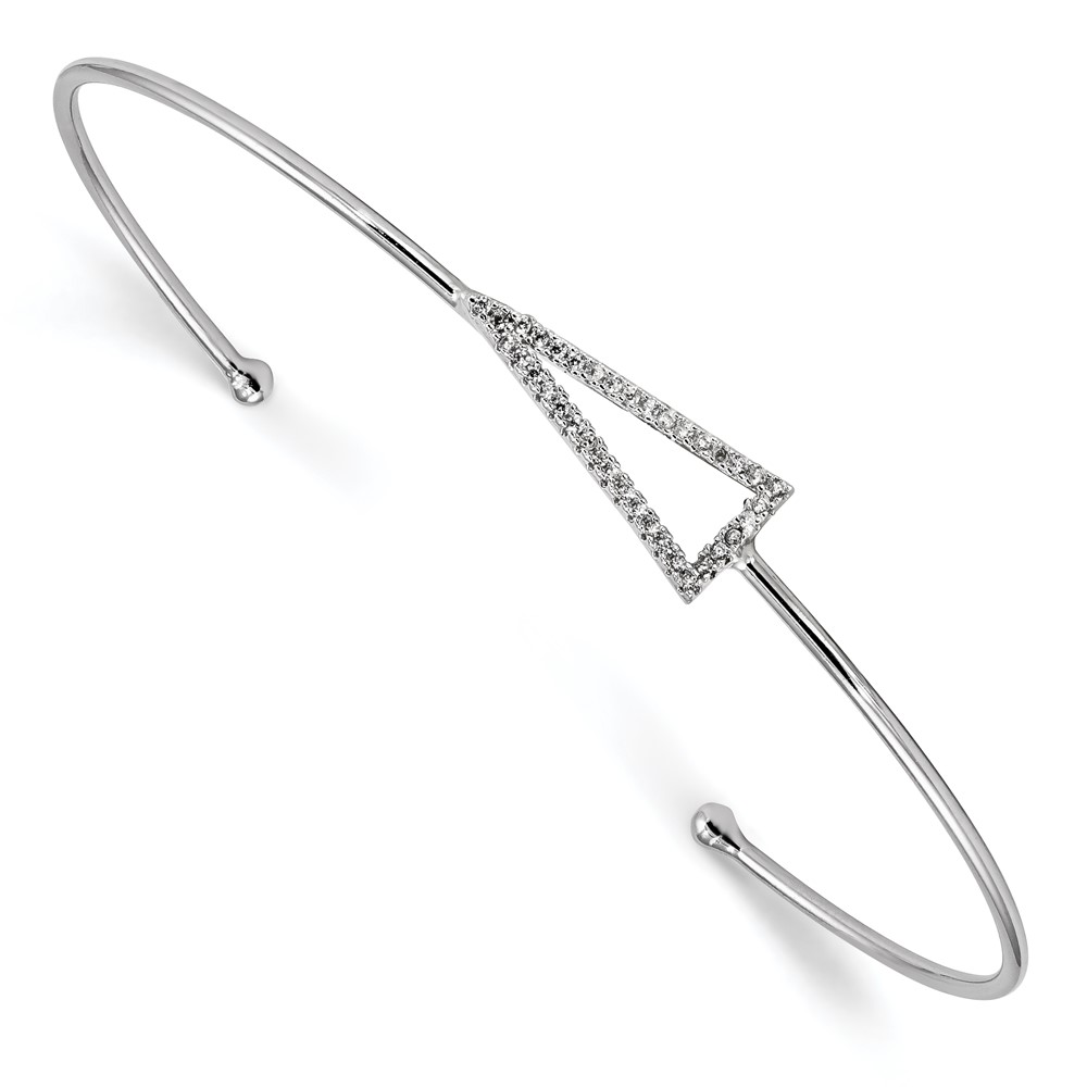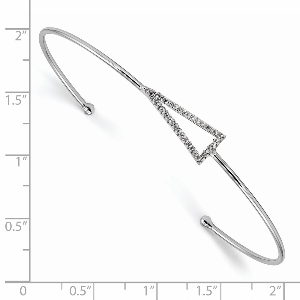 Sterling Silver Rhodium-plated CZ Triangle Cuff Bangle