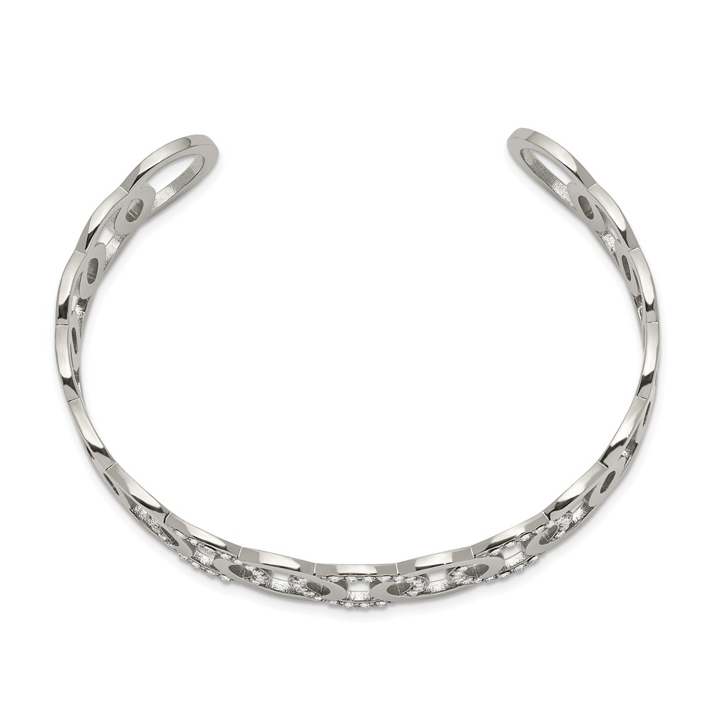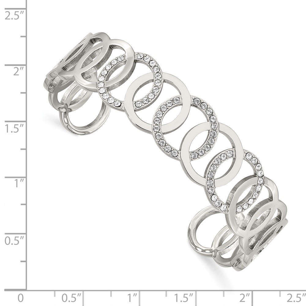 Chisel Stainless Steel Polished with Crystals 14.5mm Circles Cuff Bangle