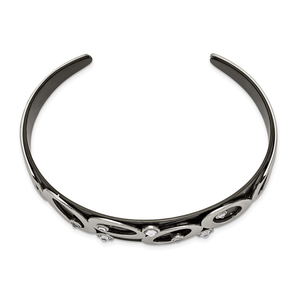 Chisel Stainless Steel Polished Black IP-plated with Crystals Cuff Bangle