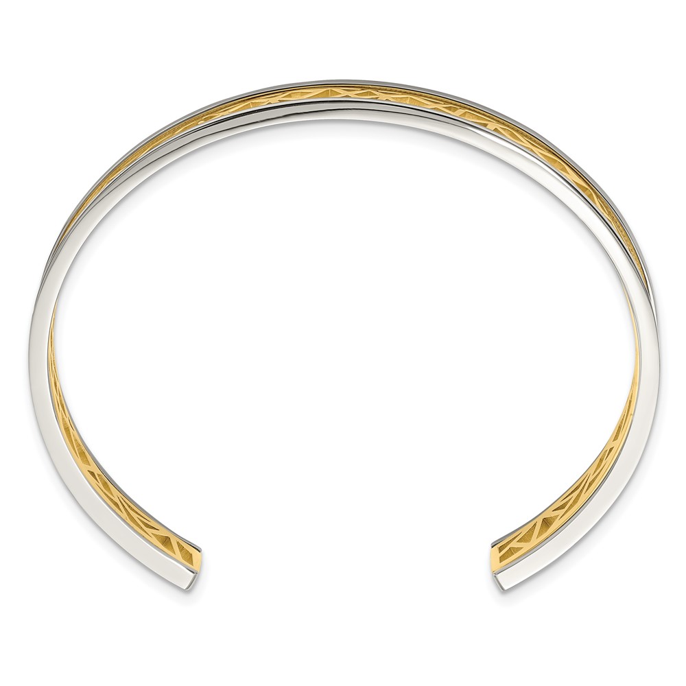Chisel Stainless Steel Polished Yellow IP-plated Cut out Center 9.5mm Cuff Bangle