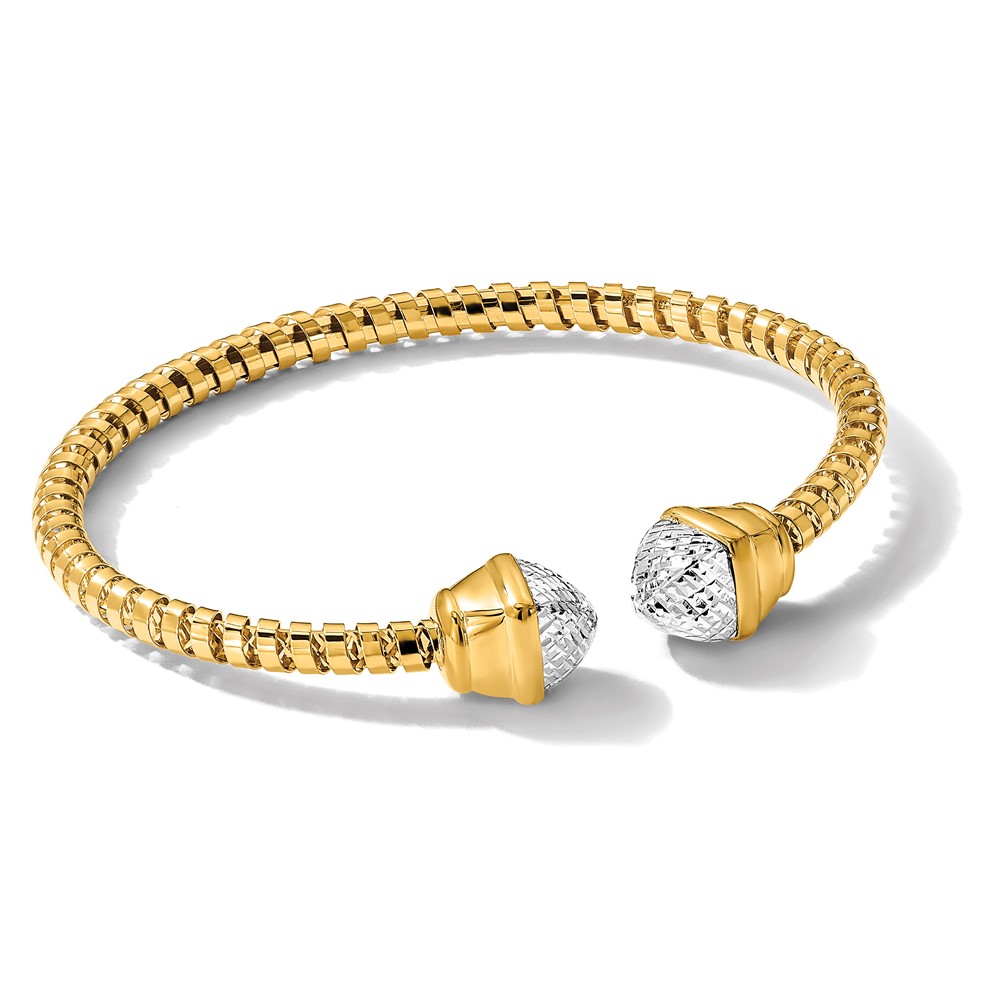 14K with Rhodium Diamond-cut Fancy Spiral Cuff Bracelet