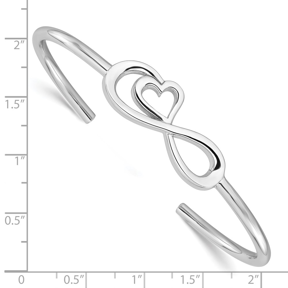 Sterling Silver Rhodium-plated Heart Infinity Symbol Cuff Bangle