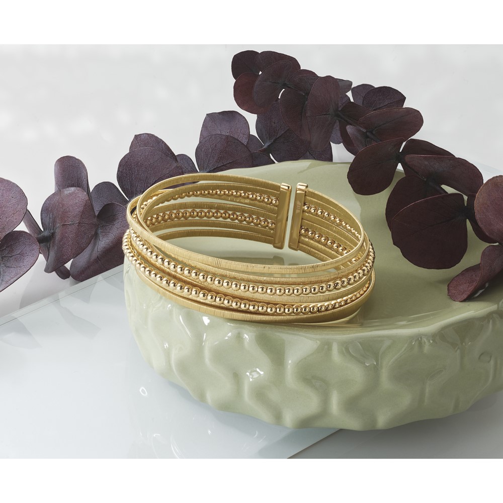 Herco 18K Polished Beaded and Textured Multi-Row Cuff Bangle