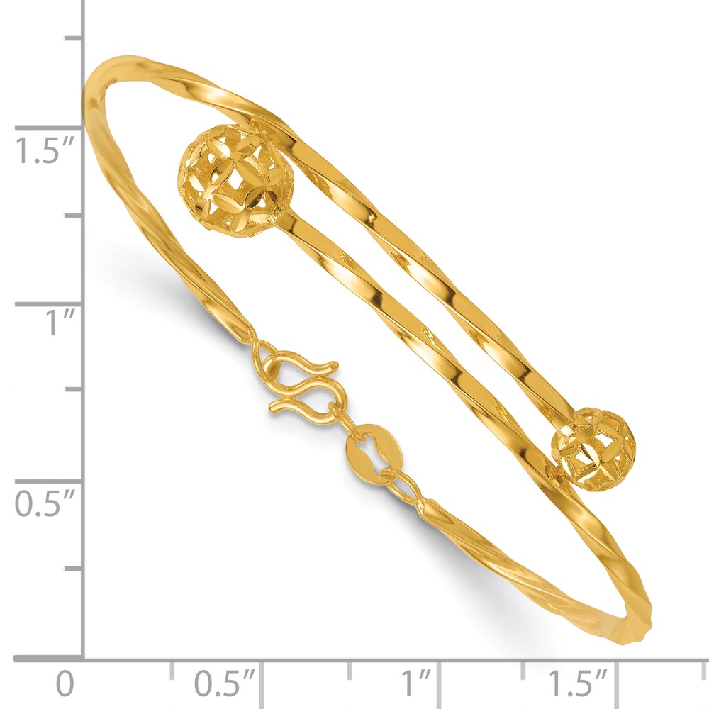 Herco 24K Polished Twisted and Diamond-cut Floral Bypass Cuff Bracelet